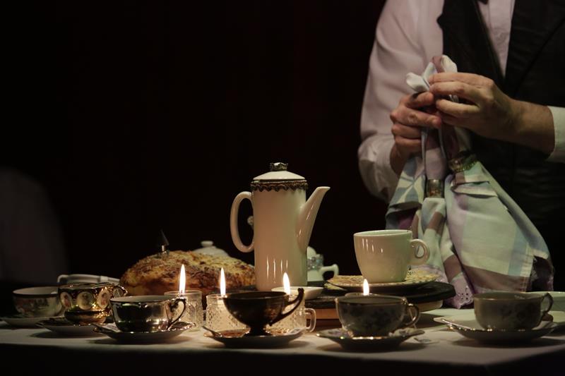 Com direção de cena da atriz e diretora Liane Venturella (terceira direção que assina para o Gente Falante, inclusive com o premiado Circo Minimal), Fontes não apenas manipula os objetos propondo um casamento, por exemplo, entre o bule e a xícara, como também convida o público, após a peça, a compartilhar da memória afetiva desses objetos – herança de sua avó – e também a desfrutar de biscoitos e chás, fortalecendo o caráter convivial da montagem.